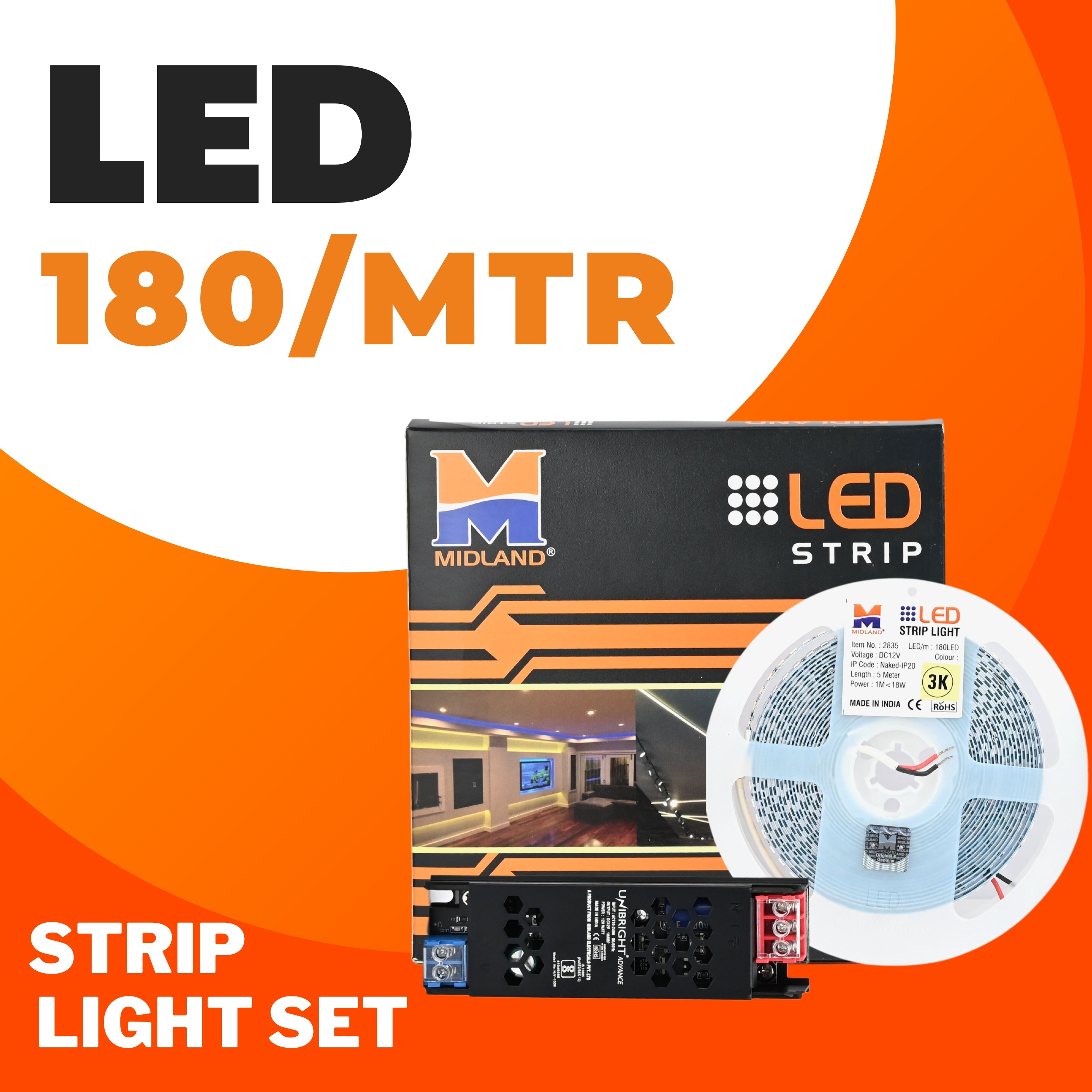 2835/180 LED PER METER 12V LED STRIP LIGHT (5 MTR.) WITH DRIVER