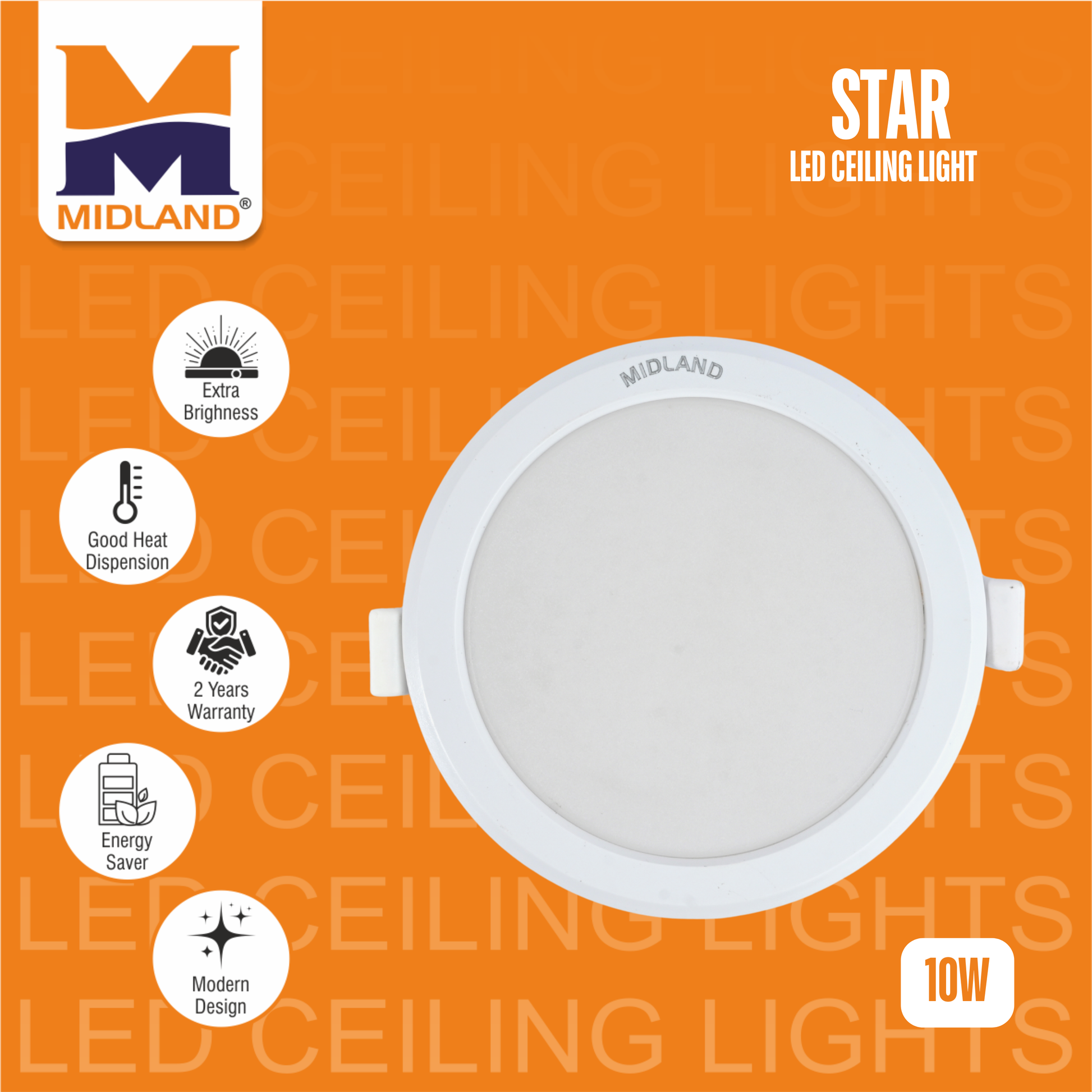 MIDLAND 10W STAR LED ROUND CEILING LIGHT