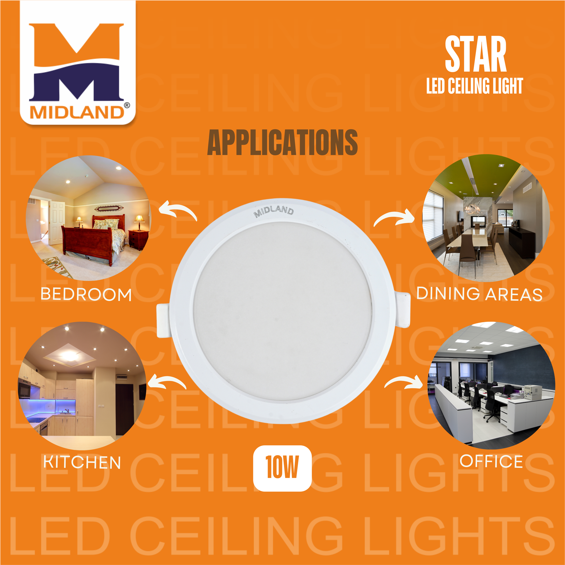 MIDLAND 10W STAR LED ROUND CEILING LIGHT