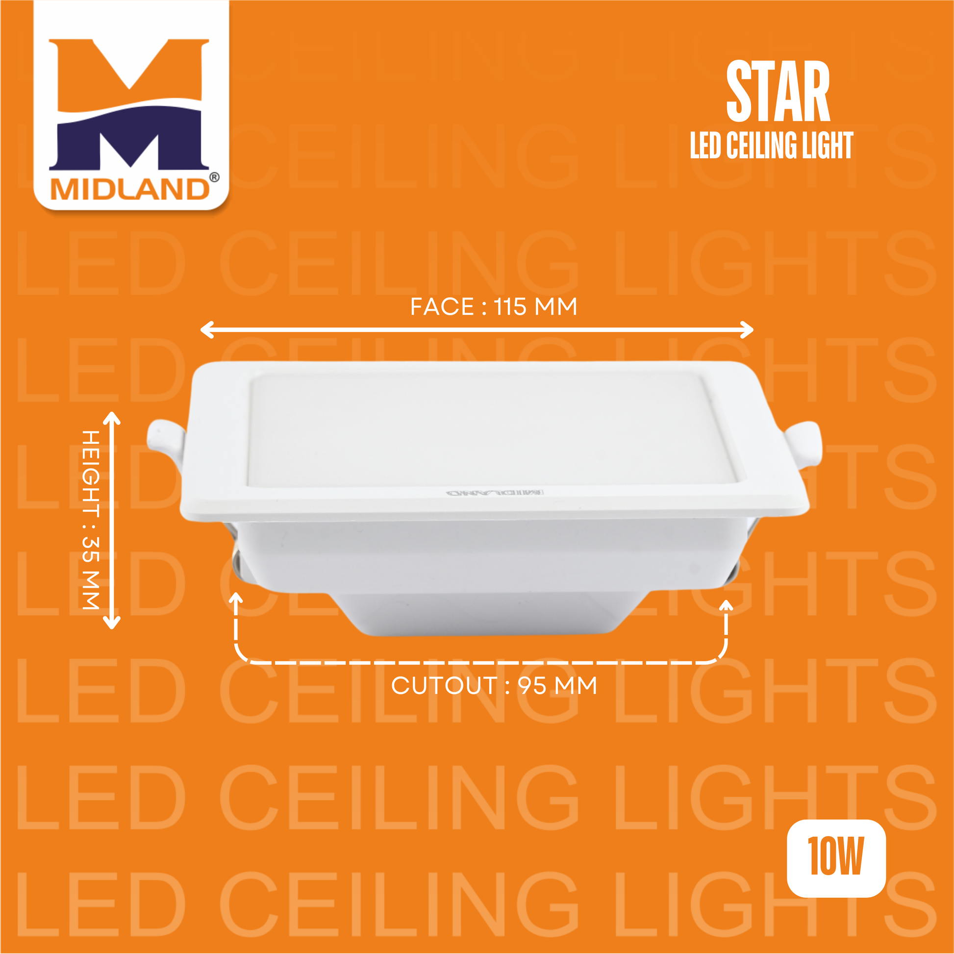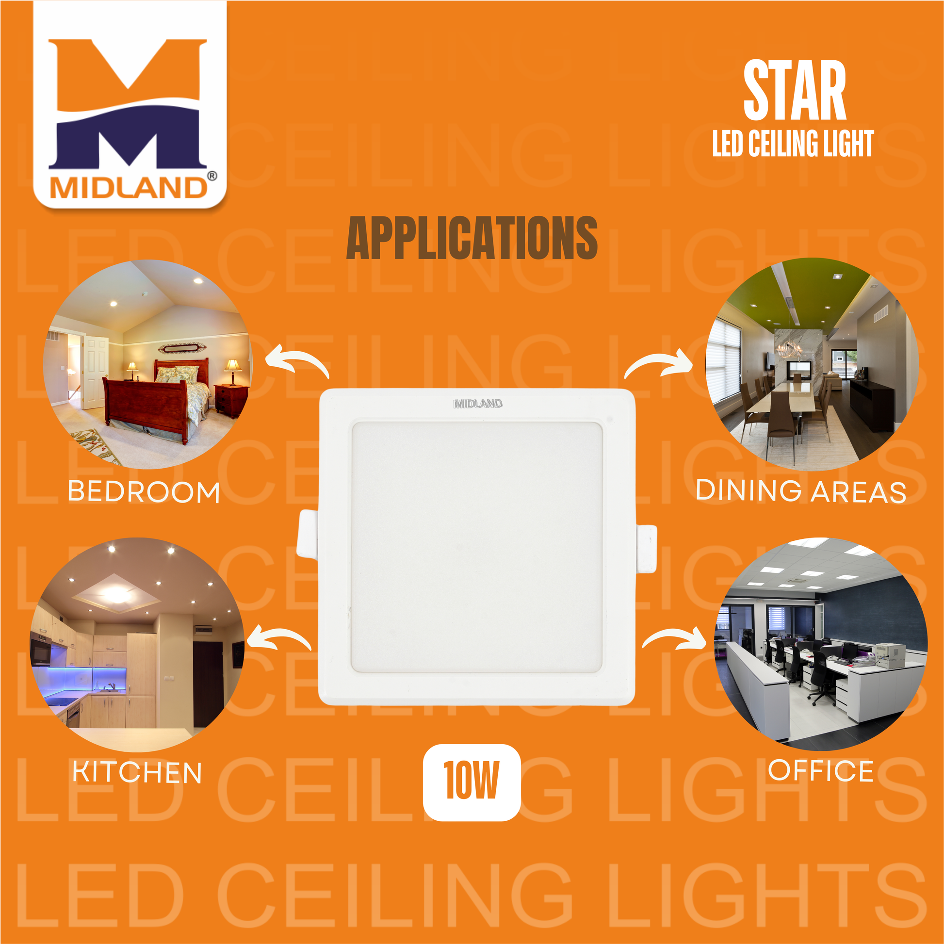 MIDLAND 10W STAR LED SQUARE CEILING LIGHT