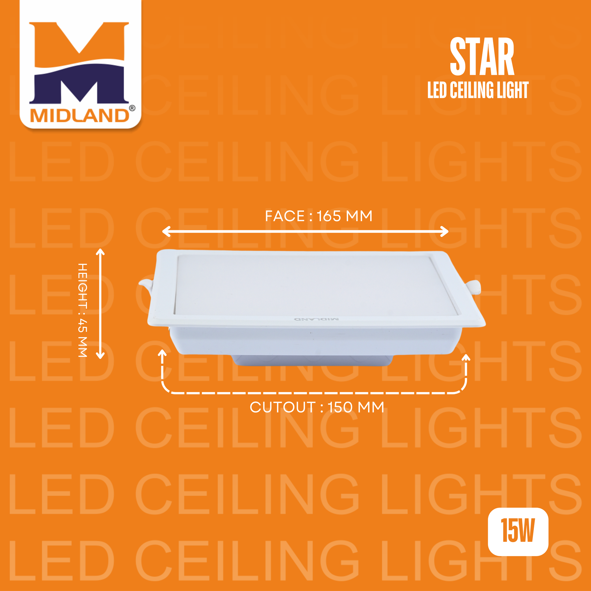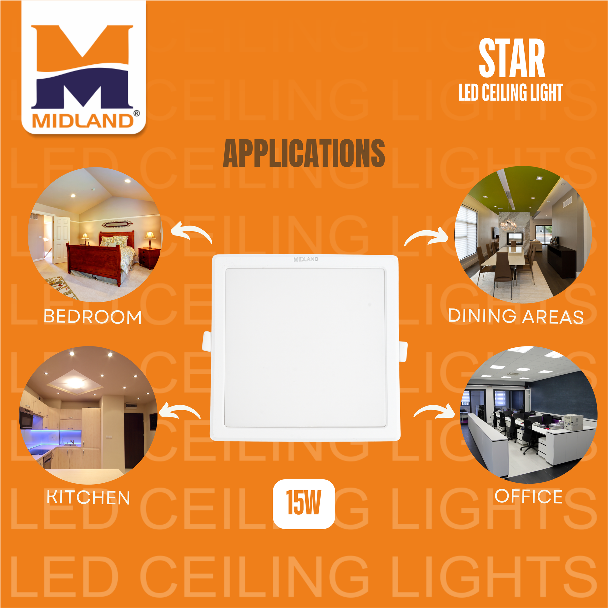 MIDLAND 15W STAR LED SQUARE CEILING LIGHT