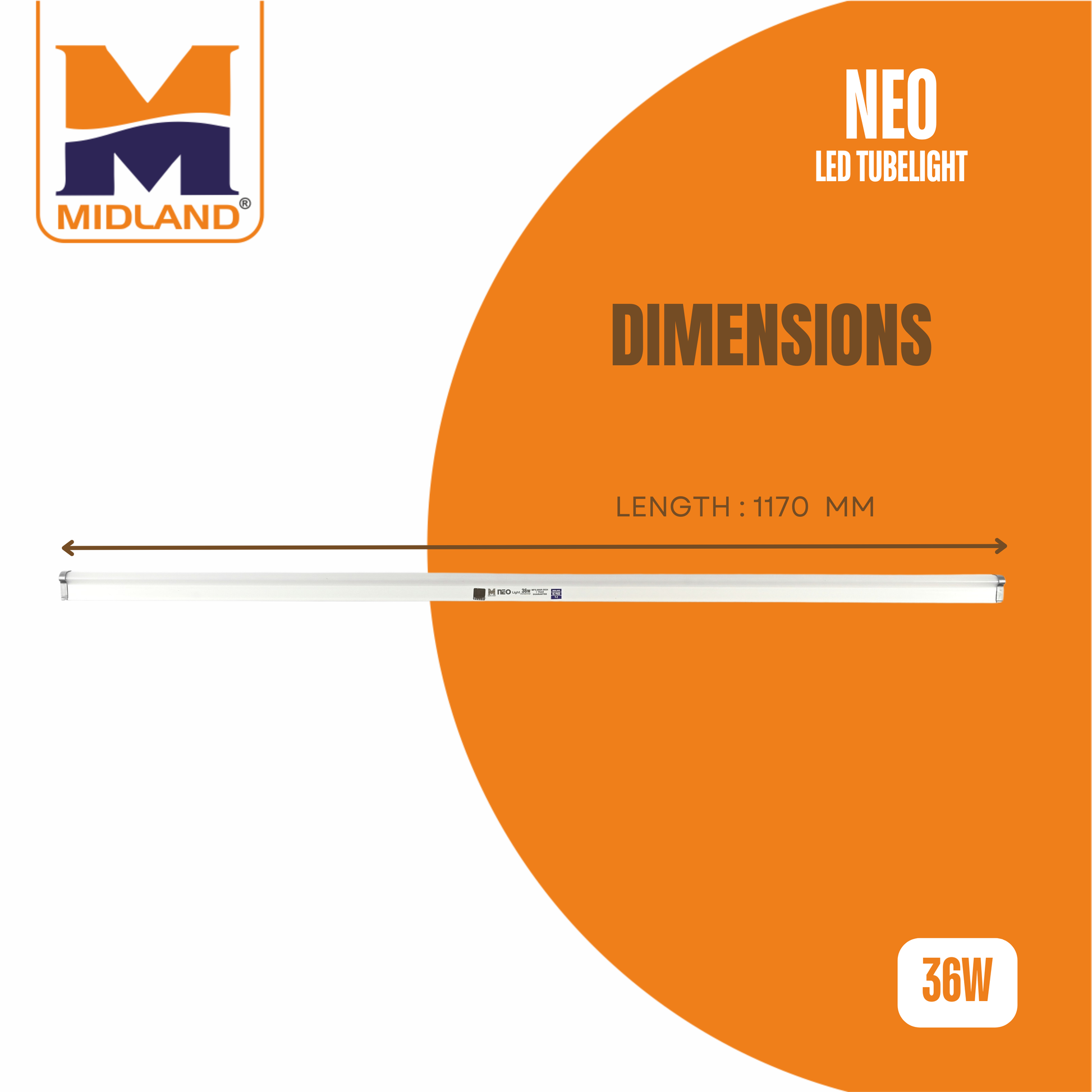 Welcome to the future of home and office lighting with the Midland 36W LED Tube Light. Designed with cutting-edge technology and a focus on energy efficiency, this LED tube light offers superior illumination and long-lasting performance. Perfect for any setting, the Midland 36W LED Tube Light combines brightness with durability, making it an ideal choice for both residential and commercial spaces.