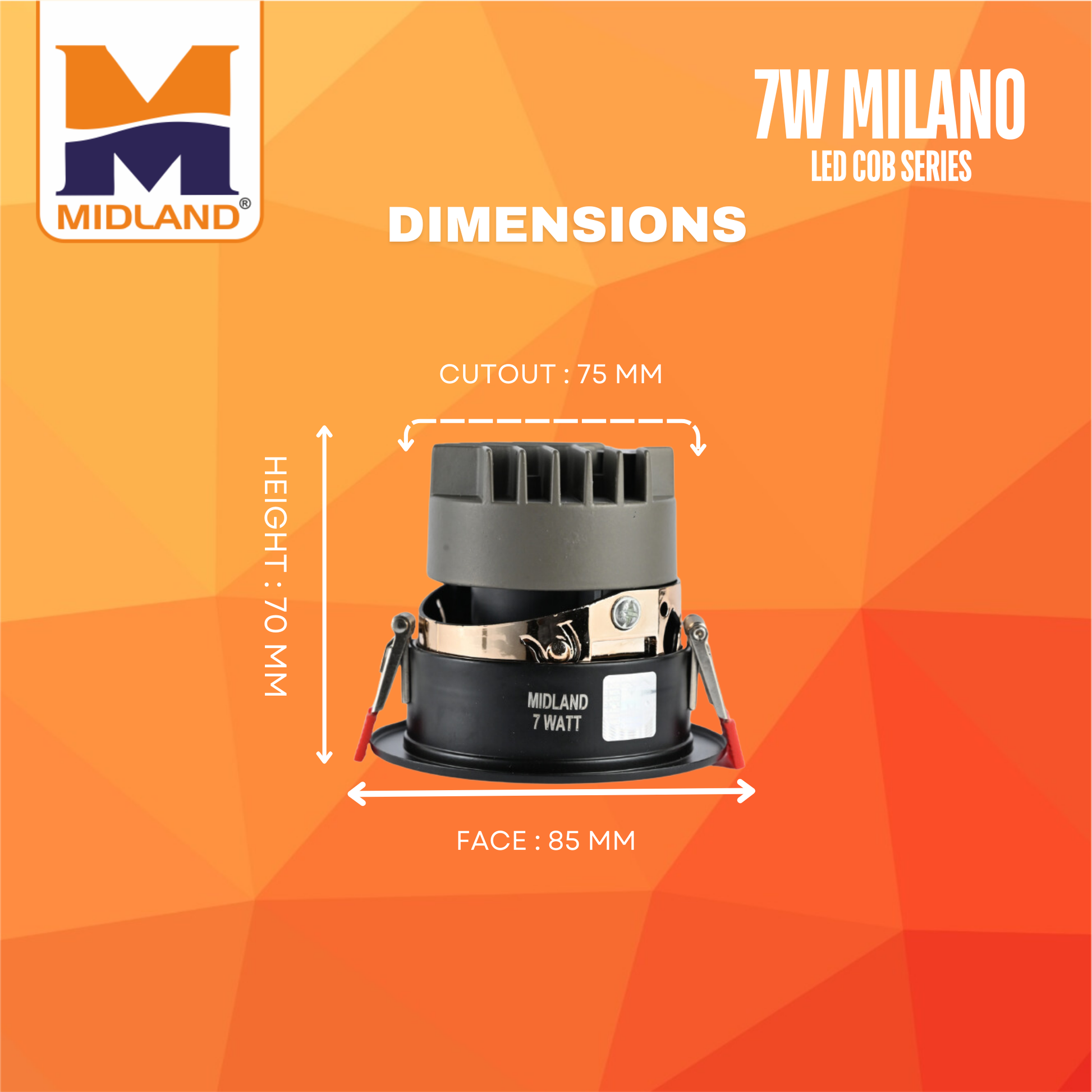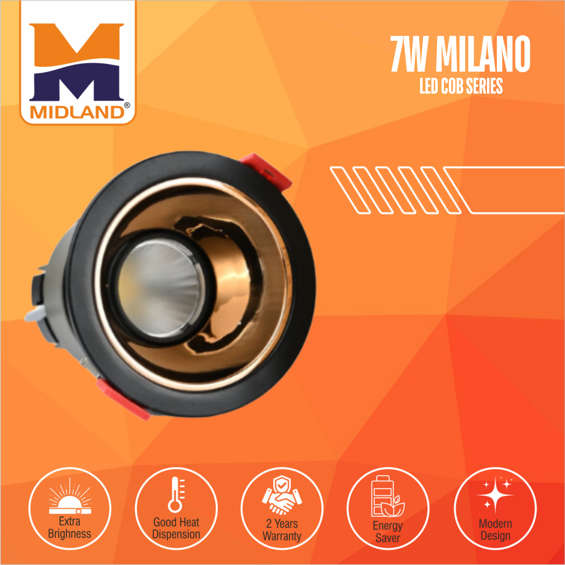 Elevate your lighting with the Midland 7W Milano LED COB Series Light! This elegant fixture features cutting-edge COB technology, providing bright and energy-efficient illumination for any space. With its chic design and refined finish, the Milano light seamlessly enhances your home or office decor. Easy to install and eco-friendly, it’s the perfect choice for creating a warm, inviting atmosphere. Illuminate your environment with sophistication