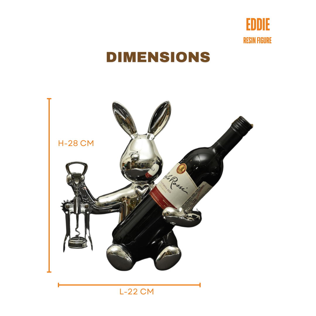An artisan-crafted resin wine holder featuring Eddie in lustrous silver, marrying craftsmanship with playful design.